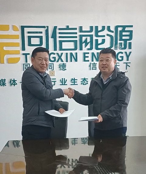 上班第一天 开门迎佳宾 集团公司首位战略合伙人签约 2月16日,节后上班第一天,商丘市恒光新能源公司总经理王凯就来到同信能源集团,与董事长高山签订了战略合伙人协议,成为集团公