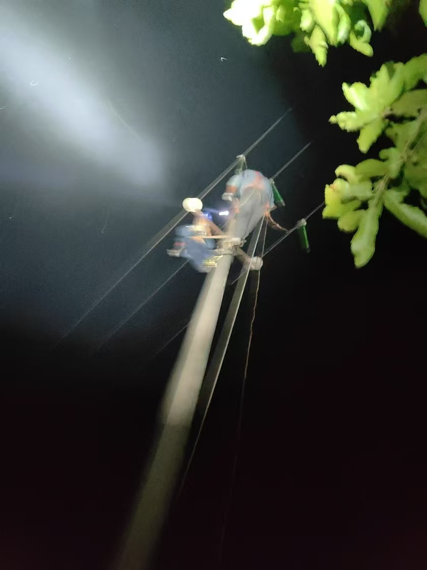 "全员集合!"宋孝彬队长的吼声在楼道里炸响。7名抢修队员像弹簧般从椅子上弹起,强光探照灯、油锯、绝缘工具的碰撞声在车库回响。不到三分钟,两辆抢修车已咆哮着冲出大院,红色警灯在夜幕中划出两道血色轨迹。