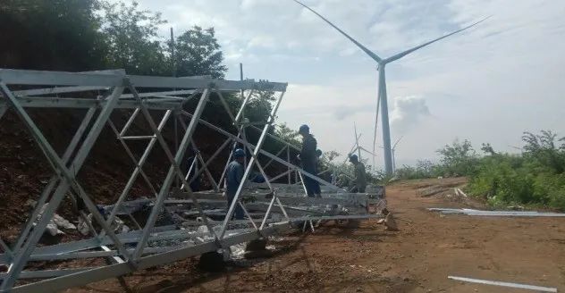 看!同信能源南京分公司工程部经理沈钦辉正带领一线员工,在河南省南召县冷风岈35KV集电线路项目吊装铁塔。他们头顶烈日,挥汗如雨,在十几米高的塔基上辛勤劳作,每一处施工现场都能看到他们埋头苦干的身影。夏日极端天气高发,时而瓢泼大雨,时而冰雹来袭,让他们吃尽了苦头。他们头戴安全帽,全副武装,顶着40度的高温,倾注全部工作热情,起早贪黑,不畏困难,不畏艰险,与质量较劲,与时间赛跑,为早日完成并网发电拼搏着、努力着!