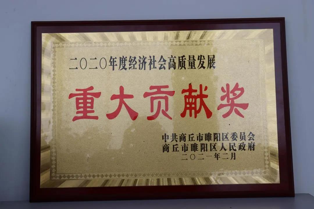 公司荣获睢阳区“2020年度经济社会高质量发展重大贡献奖”